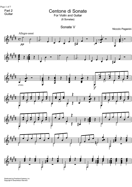 "Sonata E Major - Guitar" Sheet Music by Niccolò Paganini
