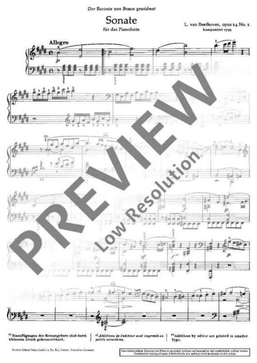 "Sonata E Major" Sheet Music by Ludwig van Beethoven