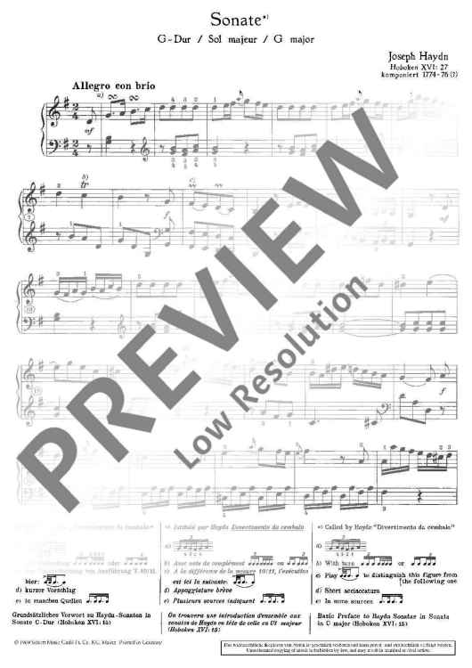 "Sonata G Major" Sheet Music by Joseph Haydn