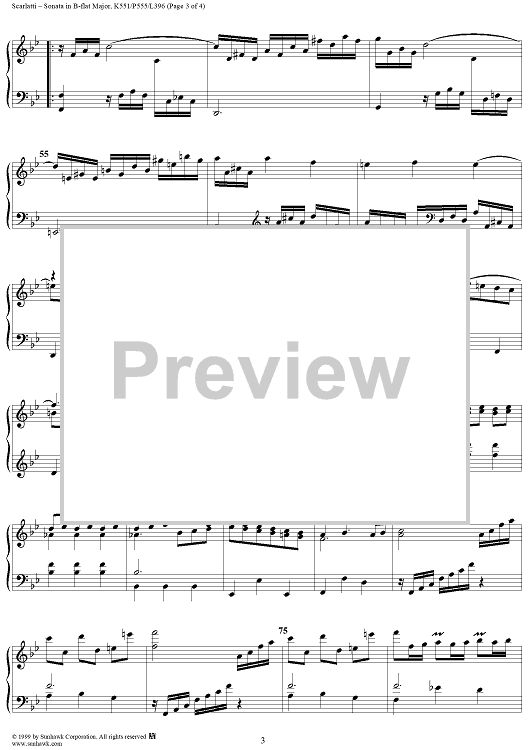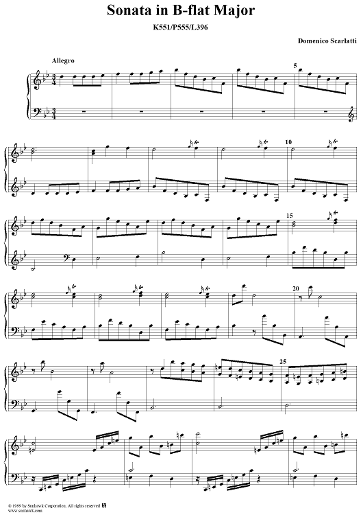 Digital Sheet Music for Sonata in B-flat major - K551/P555/L396 by Domenico Scarlatti scored for Piano Solo; id:257471