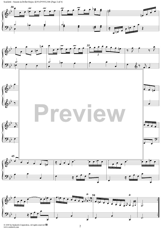 "Sonata in B-flat major - K551/P555/L396" Sheet Music by Domenico Scarlatti