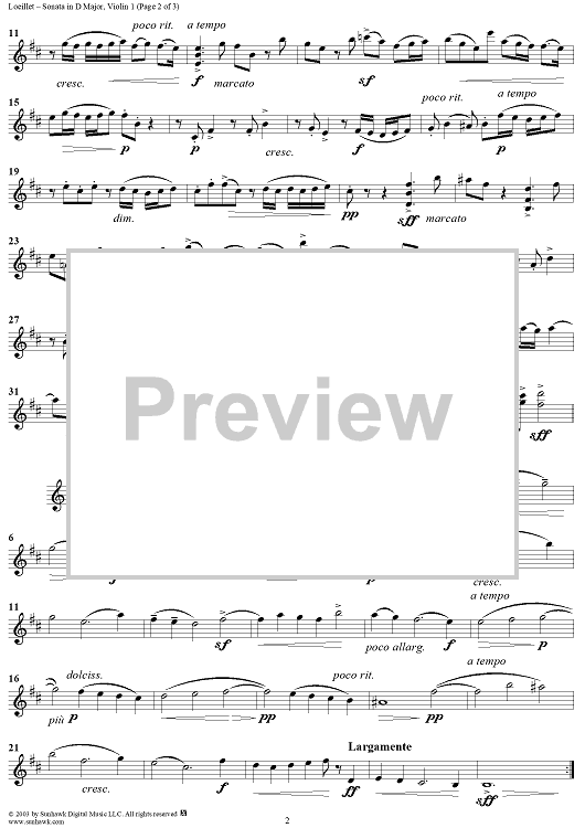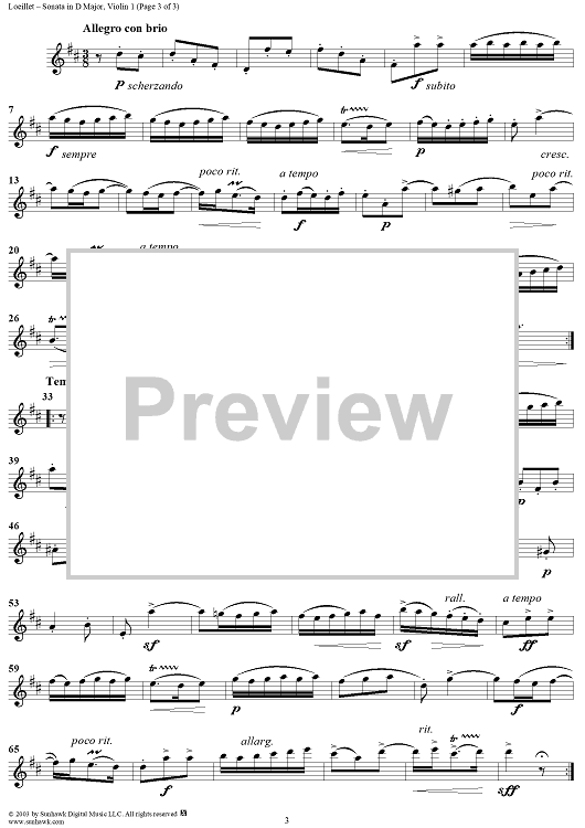 Digital Sheet Music for Sonata in D Major - Violin 1 by Jean Baptiste Loeillet scored for Two Violins/Piano; id:295140
