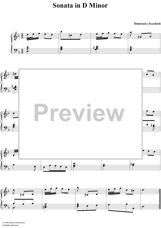 Digital Sheet Music for Sonata in D minor - K32/P14/L423 by Domenico Scarlatti scored for Piano Solo; id:257172