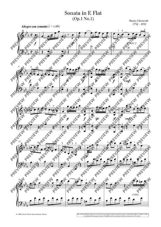 Digital Sheet Music for Sonata in E Flat by Muzio Clementi scored for Piano; id:497754