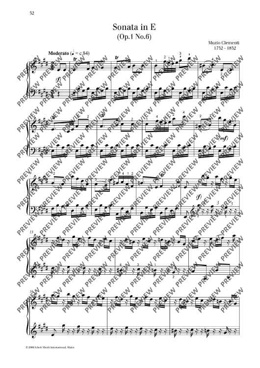 Digital Sheet Music for Sonata In E by Muzio Clementi scored for Piano; id:497759