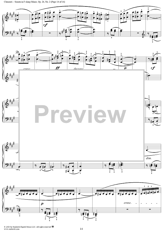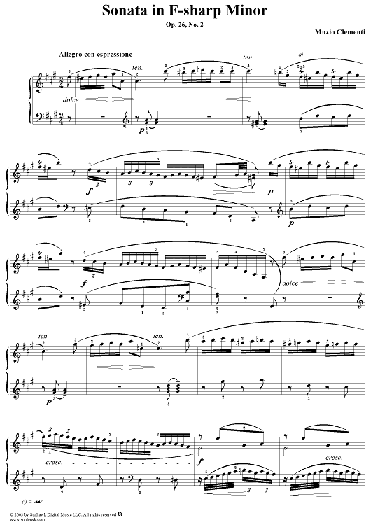 Digital Sheet Music for Sonata in F-sharp Minor, Op. 26, No. 2 by Muzio Clementi scored for Piano Solo; id:293736