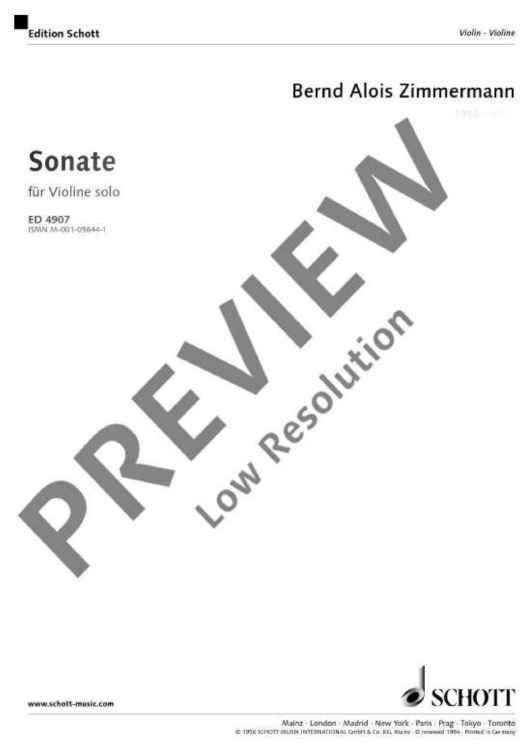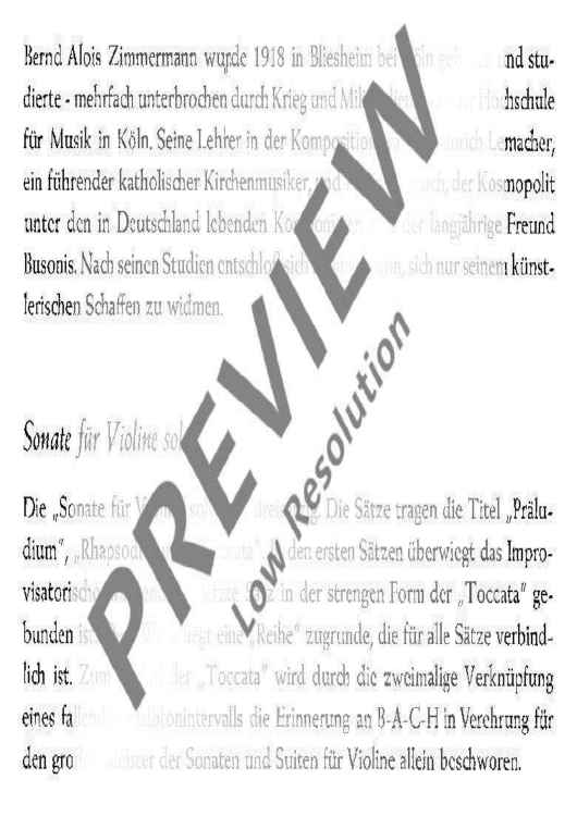 Digital Sheet Music for Sonata by Bernd Alois Zimmermann scored for Violin; id:473290