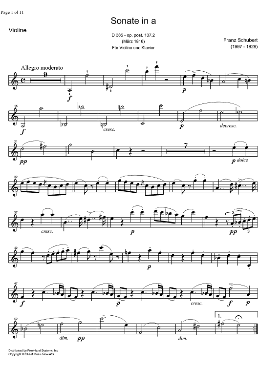 Digital Sheet Music for Sonatina a minor D385 - Violin by Franz Schubert scored for Violin/Piano; id:322558