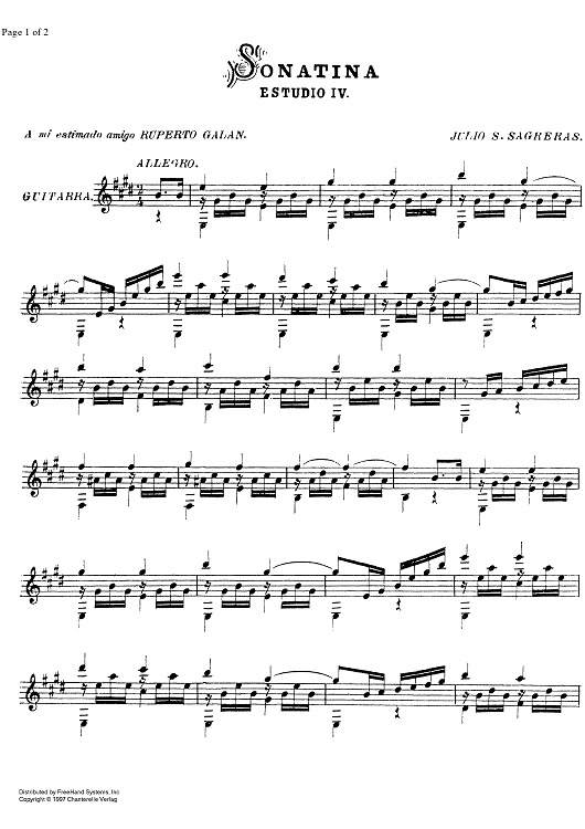 Digital Sheet Music for Sonatina-Estudio No. 4 by Julio Sagreras scored for Guitar; id:327127