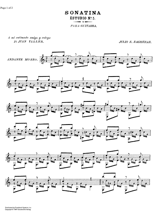 Digital Sheet Music for Sonatina-Estudio No. 5 by Julio Sagreras scored for Guitar; id:327128