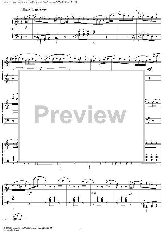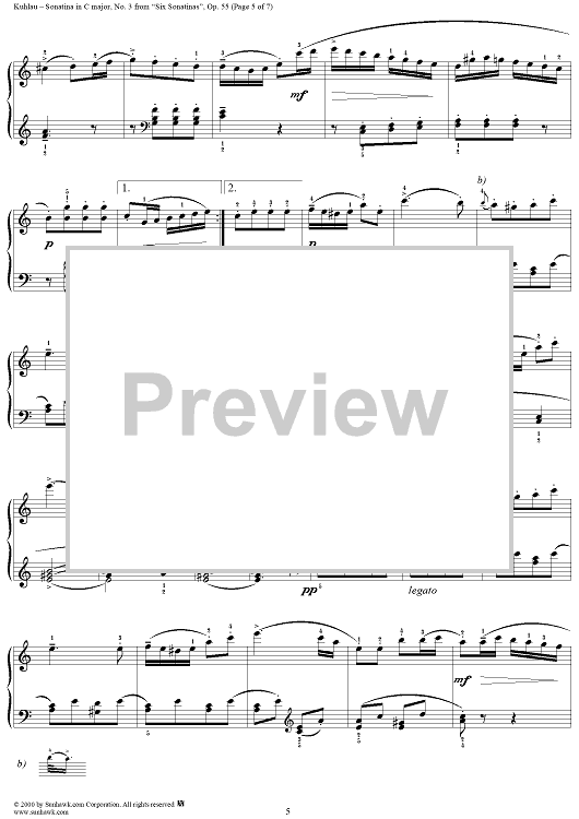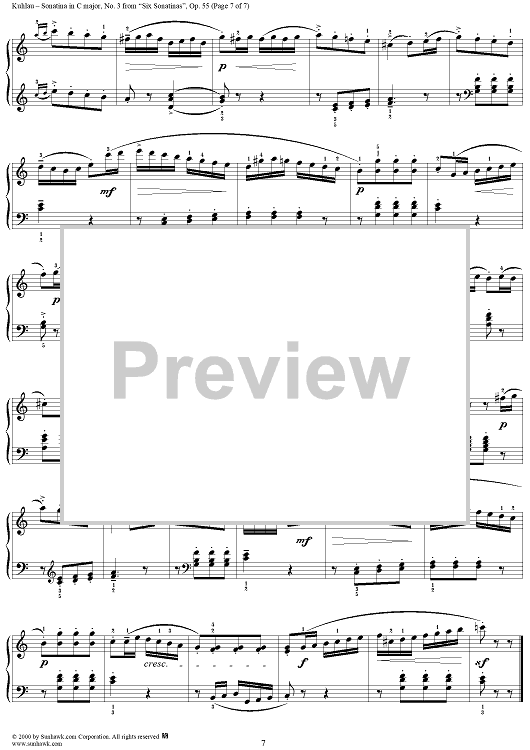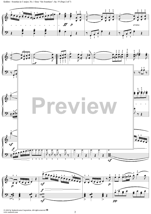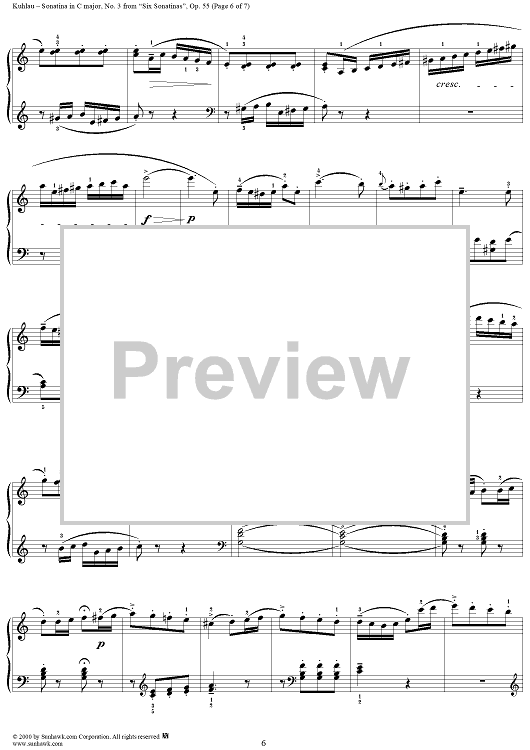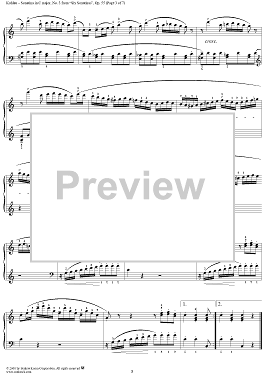 Digital Sheet Music for Sonatina in C major, No. 3 from "Six Sonatinas" Op. 55 by Friedrich Kuhlau scored for Piano Solo; id:253210