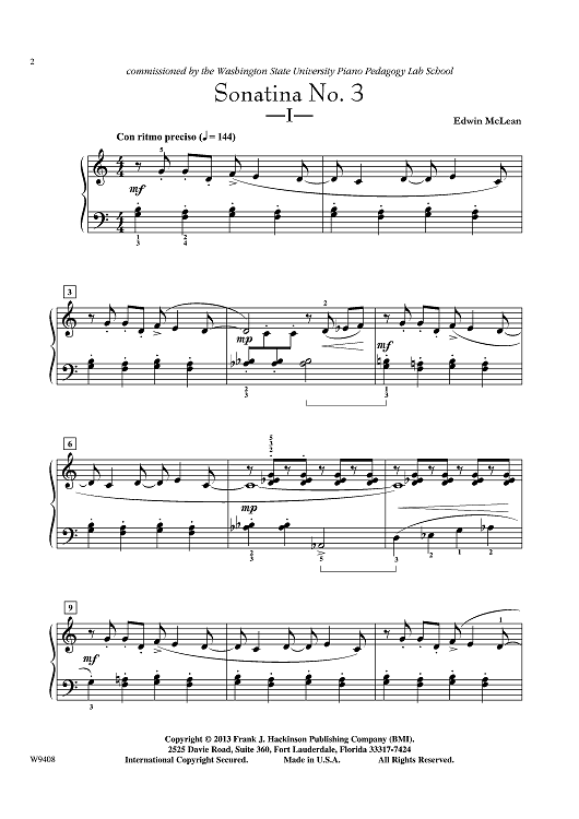 "Sonatina No. 3" Sheet Music by Edwin McLean