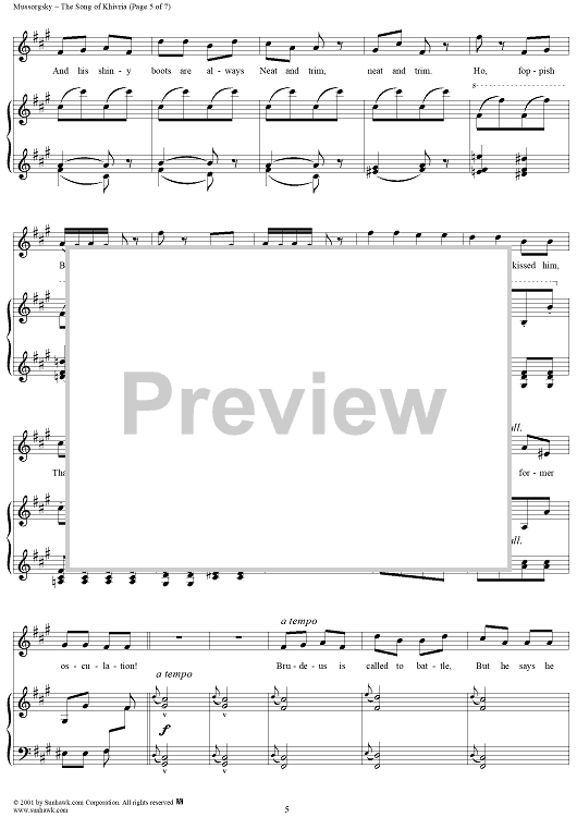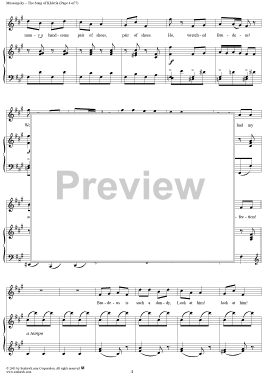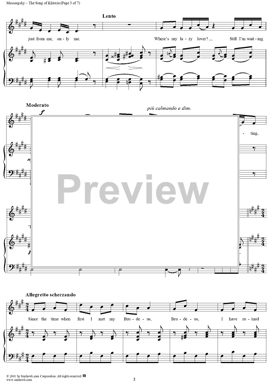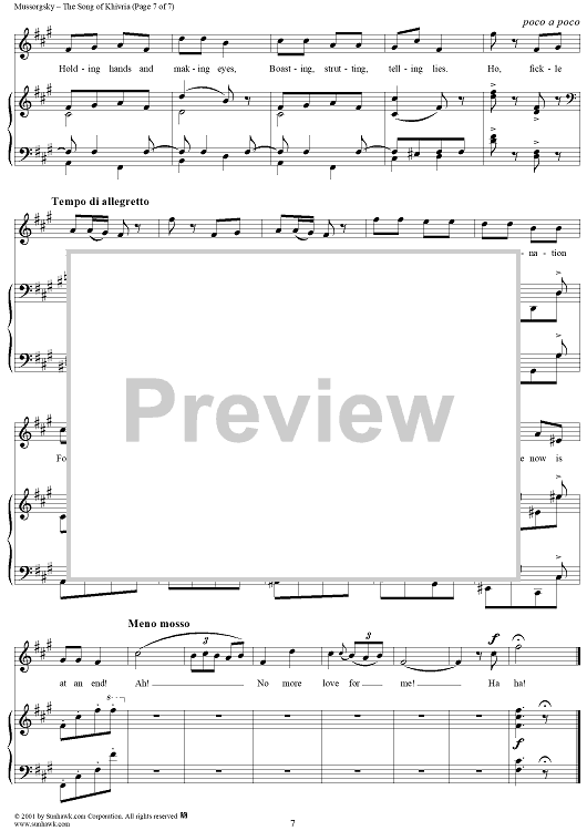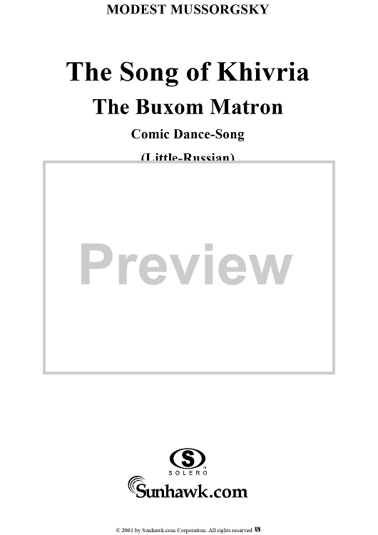 Digital Sheet Music for Song of Khivria, from the opera "Sorochinsky Fair" by Modest Musorgsky scored for Voice/Piano; id:253240