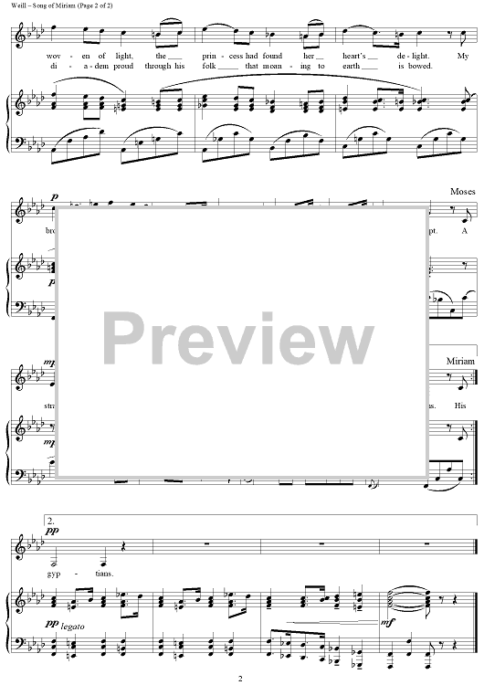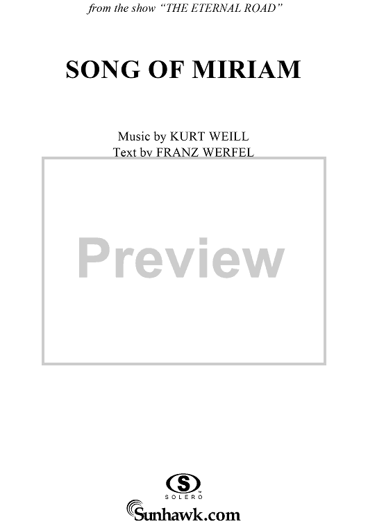 Digital Sheet Music for Song of Miriam by Franz Werfel, Kurt Weill scored for Piano/Vocal; id:263534