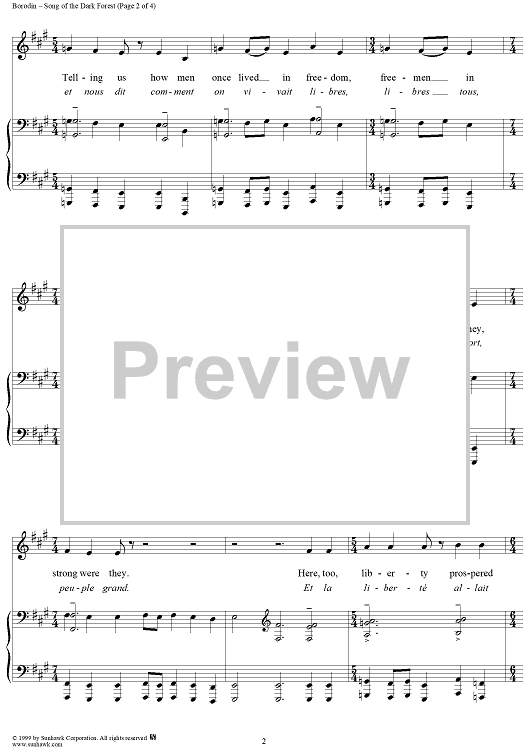 Digital Sheet Music for Song of the Dark Forest by Alexander Borodin scored for Voice/Piano; id:113246