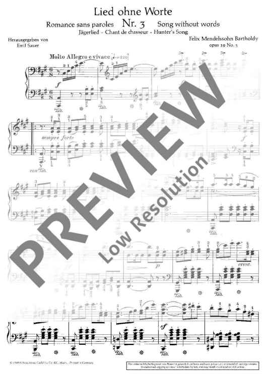 "Songs without Words in A major" Sheet Music by Felix Mendelssohn Bartholdy