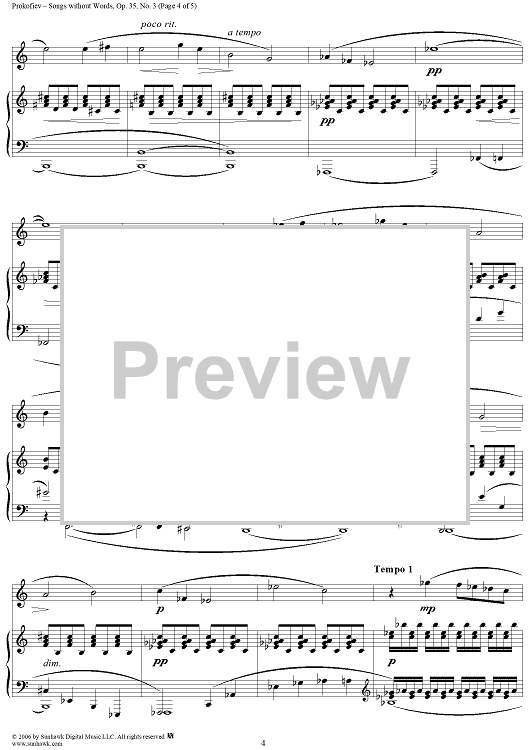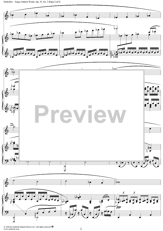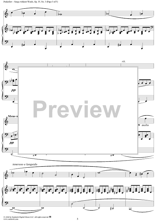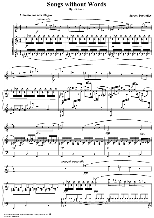 Digital Sheet Music for Songs Without Words, Op. 35, No. 3 ''Animato, ma non allegro'' by Sergei Prokofiev scored for Voice/Piano; id:317054