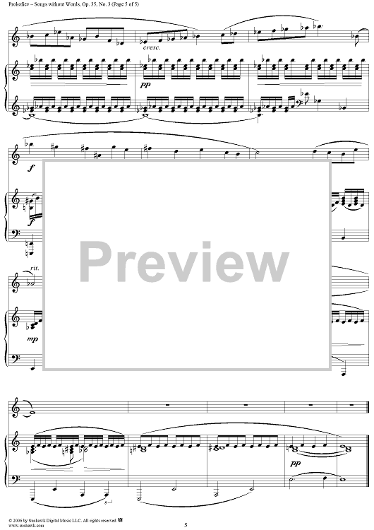 "Songs Without Words, Op. 35, No. 3 ''Animato, ma non allegro''" Sheet Music by Sergei Prokofiev