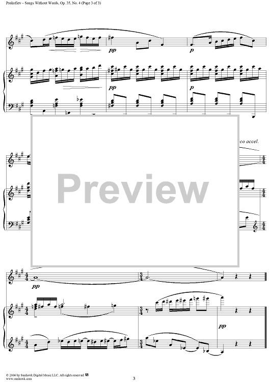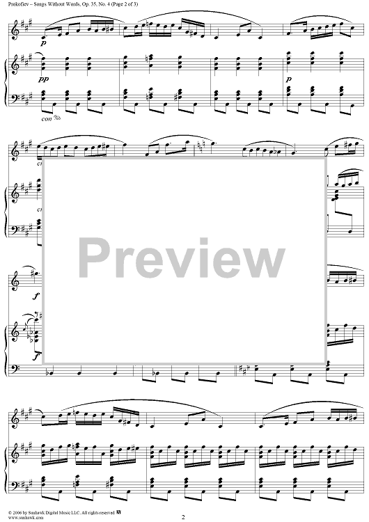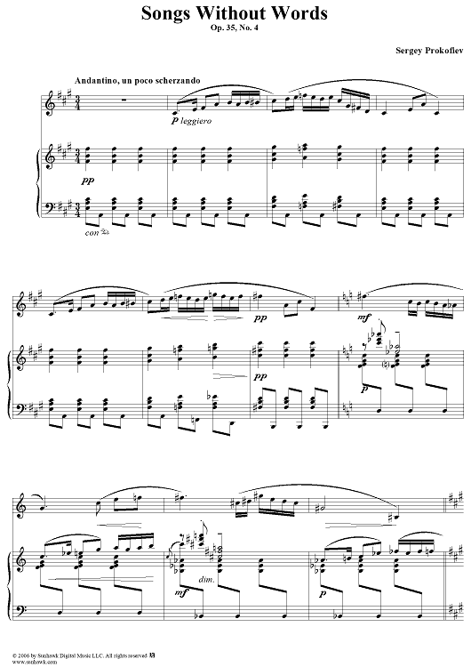 Digital Sheet Music for Songs Without Words, Op. 35, No. 4 ''Andantino, un poco scherzando'' by Sergei Prokofiev scored for Voice/Piano; id:317055