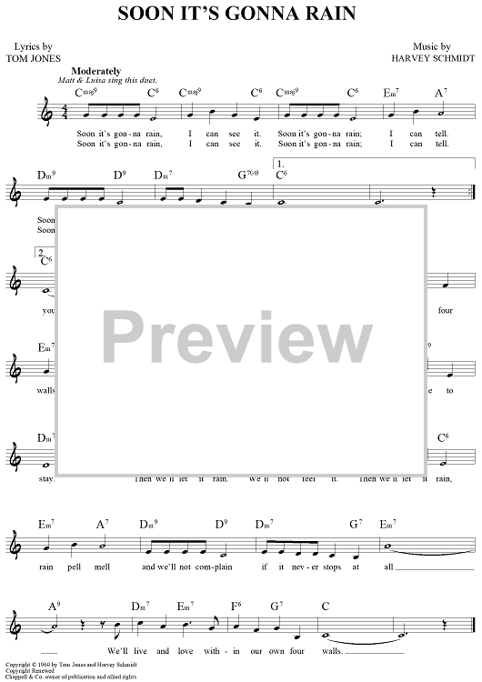 "Soon It's Gonna Rain" Sheet Music by Harvey Schmidt