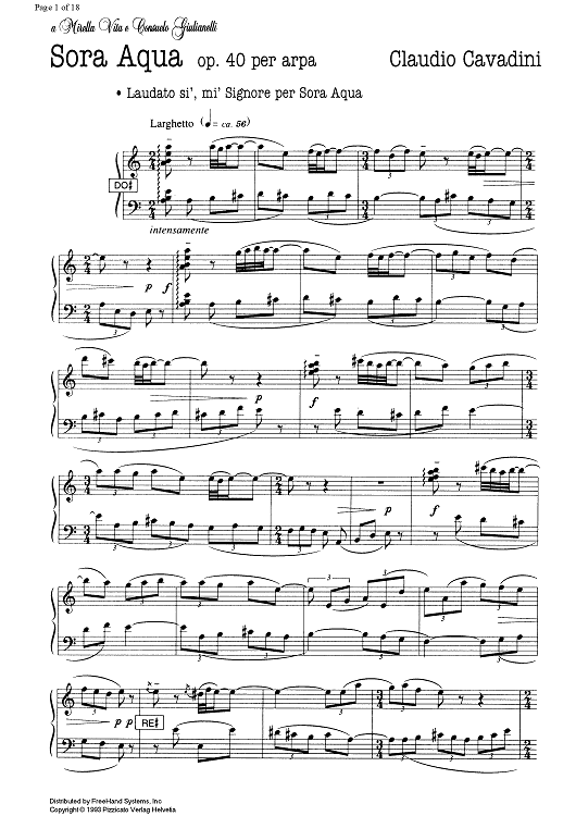 Digital Sheet Music for Sora Aqua Op.40 by , Claudio Cavadini scored for Harp Solo; id:329917