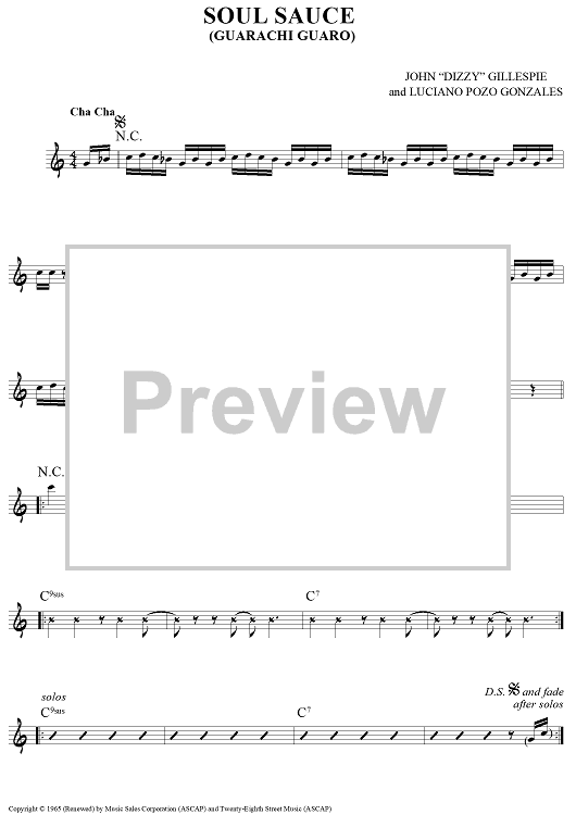 Digital Sheet Music for Soul Sauce (Guarachi Guaro) by Dizzy Gillespie, Chano Pozo scored for Lead Sheet; id:456586