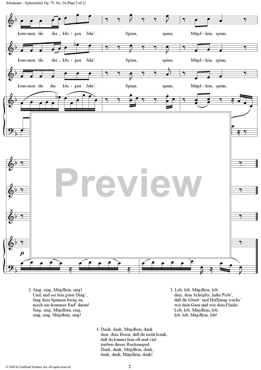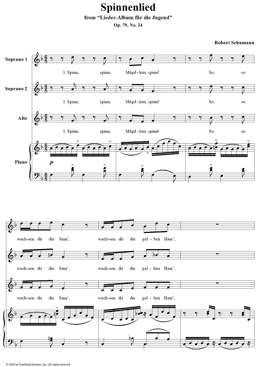 Digital Sheet Music for Spinnenlied, No. 24, Op. 79 by Robert Schumann, Unknown Writer scored for Voice/Piano; id:321603