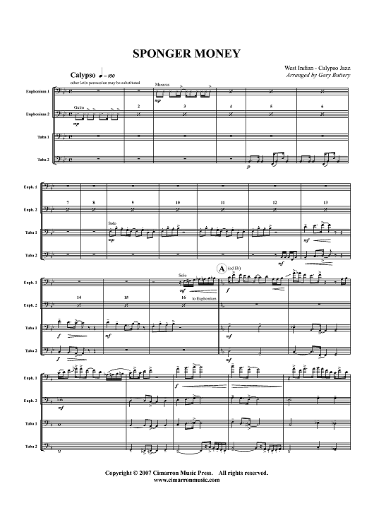 Digital Sheet Music for Sponger Money - Score by Gary Buttery, Traditional scored for Tuba Quartet; id:416513