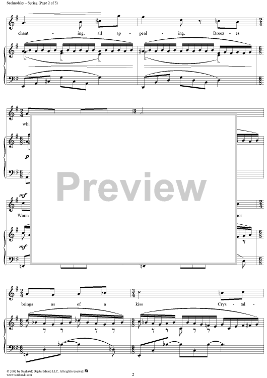 Digital Sheet Music for Spring by G. Sachnofsky scored for Voice/Piano; id:255110