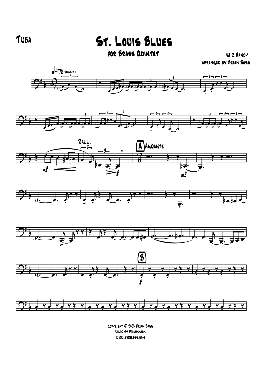 Digital Sheet Music for St. Louis Blues - Tuba by Brian Bass, W. C. Handy scored for Brass Quintet; id:312407