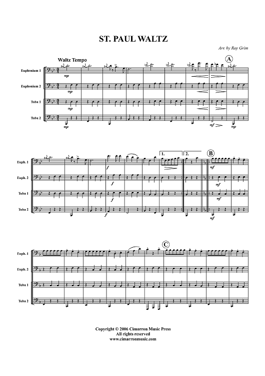 Digital Sheet Music for St. Paul Waltz - Score by Ray Grim scored for Tuba Quartet; id:360581
