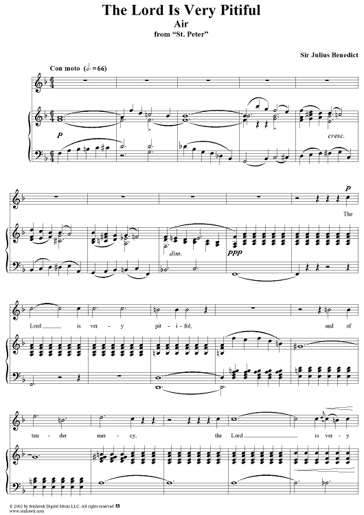 Digital Sheet Music for St. Peter, "The Lord is very pitiful" by Sir Julius Benedict scored for Voice/Piano; id:260477