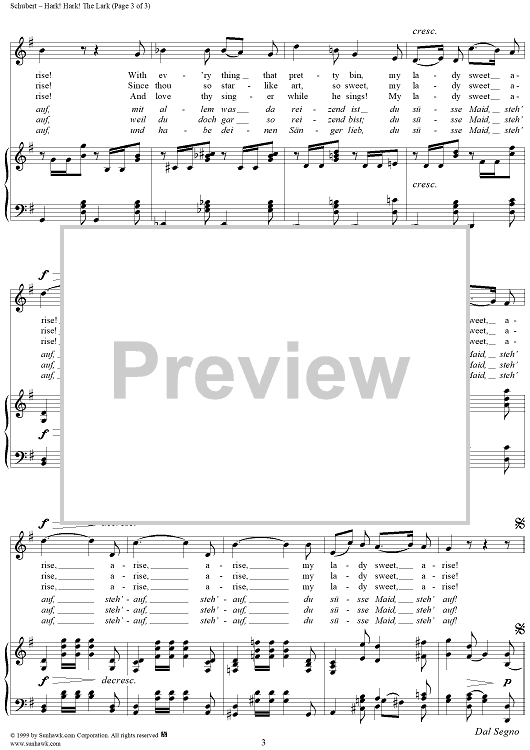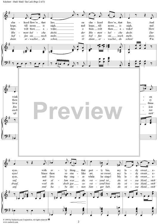 Digital Sheet Music for Ständchen (Hark! Hark! The Lark), D889 by Franz Schubert scored for Voice/Piano; id:271660
