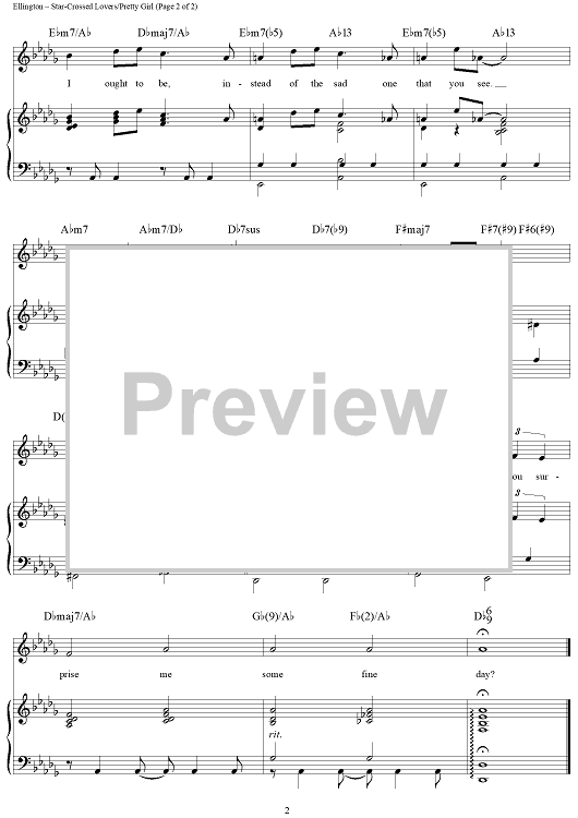 Digital Sheet Music for Star-Crossed Lovers/Pretty Girl by Duke Ellington, Billy Strayhorn scored for Piano/Vocal/Chords; id:356193