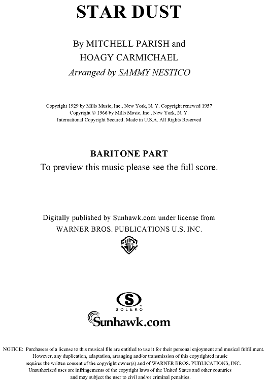 Digital Sheet Music for Star Dust - Baritone TC by Mitchell Parish, Hoagy Carmichael, Sammy Nestico scored for Concert Band; id:254185