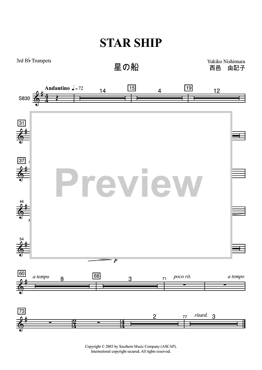 Digital Sheet Music for Star Ship - Bb Trumpet 3 by Yukiko Nishimura scored for Concert Band; id:503642