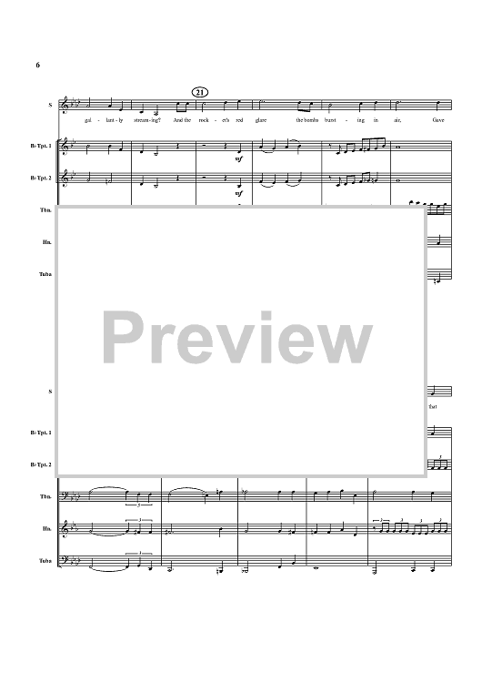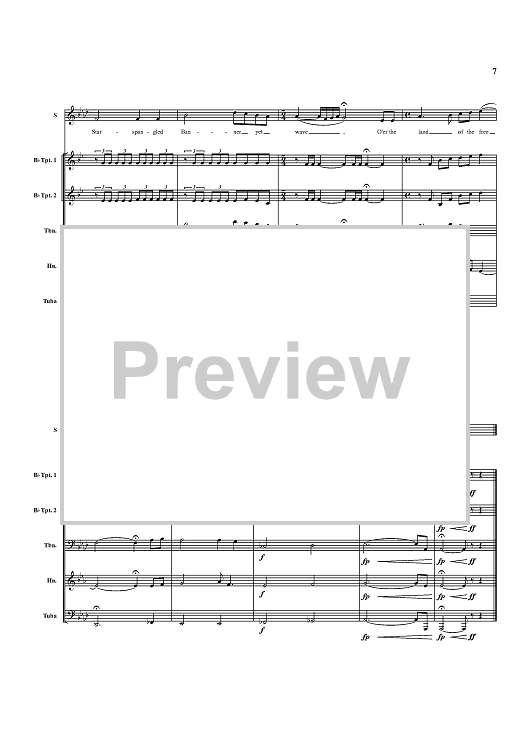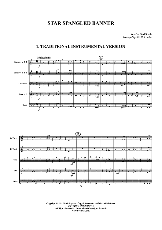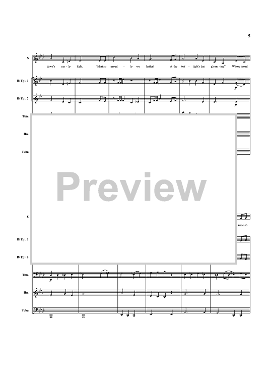 Digital Sheet Music for Star Spangled Banner - Score by John Stafford Smith, Bill Holcombe scored for Brass Quintet; id:405064
