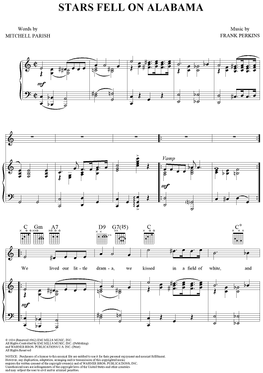 Digital Sheet Music for Stars Fell on Alabama by Mitchell Parish, Jack Teagarden, Frank Perkins scored for Piano/Vocal/Chords; id:112175
