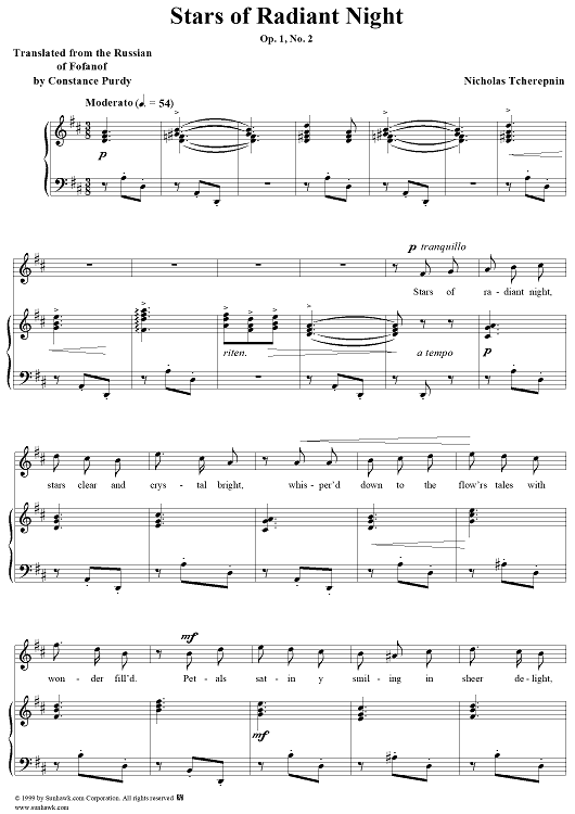 "Stars of Radiant Night - Op. 1, no. 2" Sheet Music by Nicholas Tcherepnin