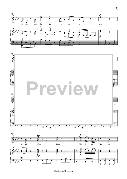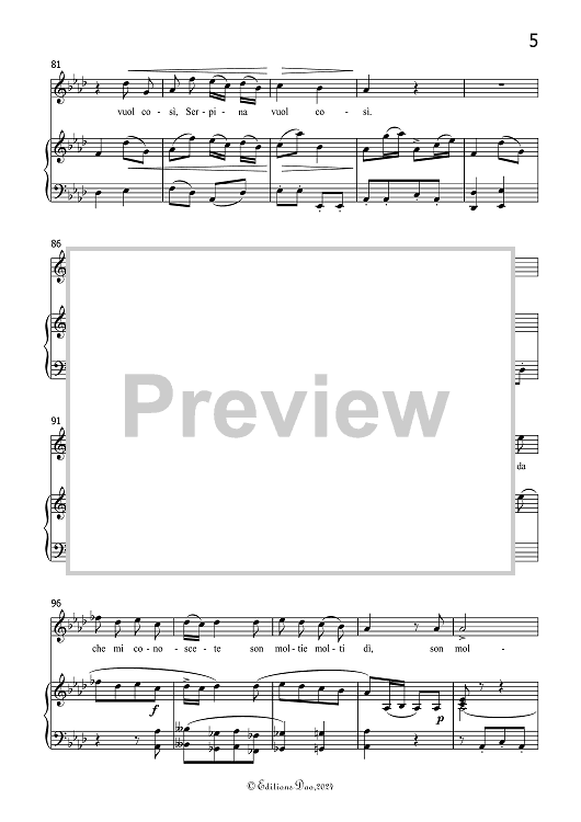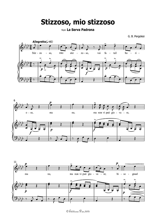 "Stizzoso, mio stizzoso" from 'La Serva Padrona', in A flat Major, for Voice and Piano