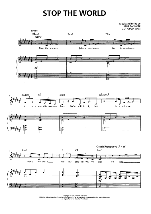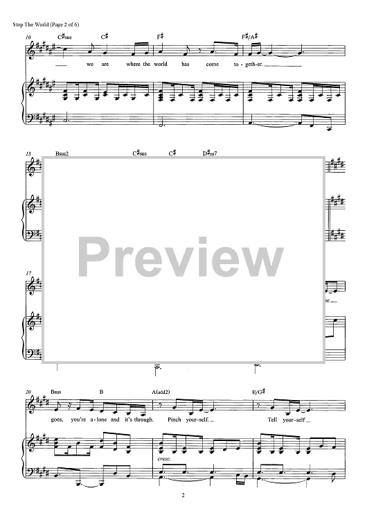 Digital Sheet Music for Stop The World - from Come From Away by Irene Sankoff, David Hein scored for Piano/Vocal/Chords; id:466623