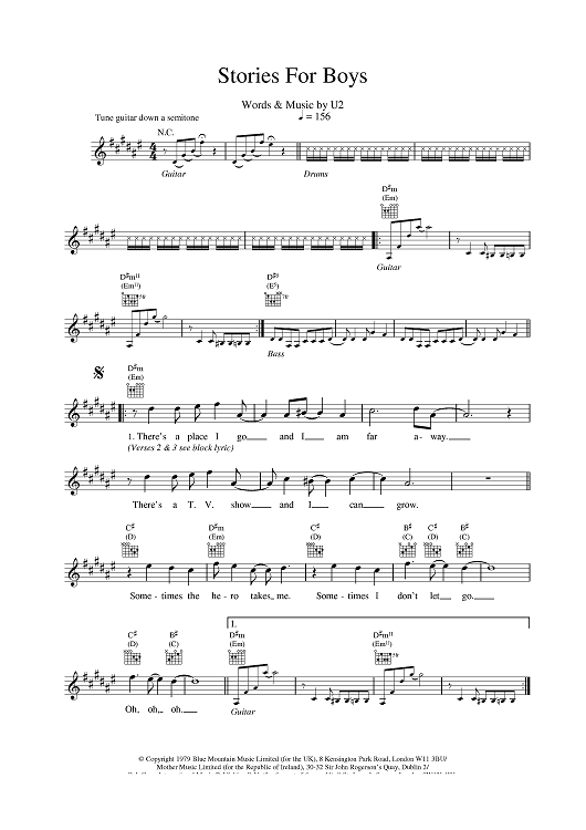 Digital Sheet Music for Stories For Boys by U2 scored for Lead Sheet; id:376973
