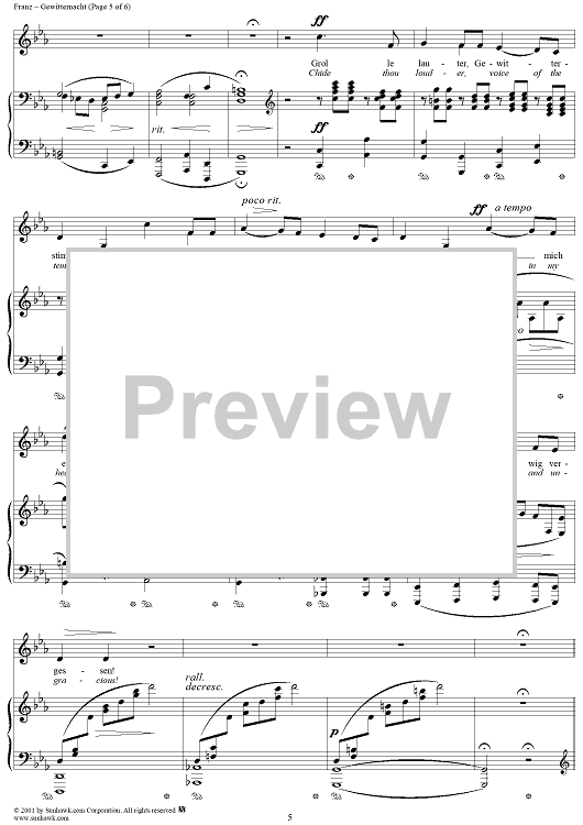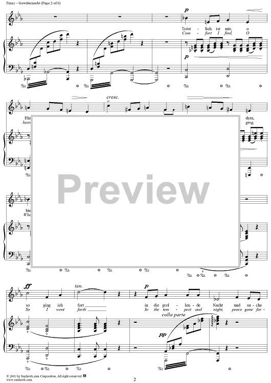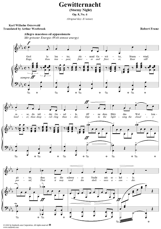 Digital Sheet Music for Stormy Night (Gewitternacht) by Robert Franz, Karl Wilhelm Osterwald scored for Voice/Piano; id:269565