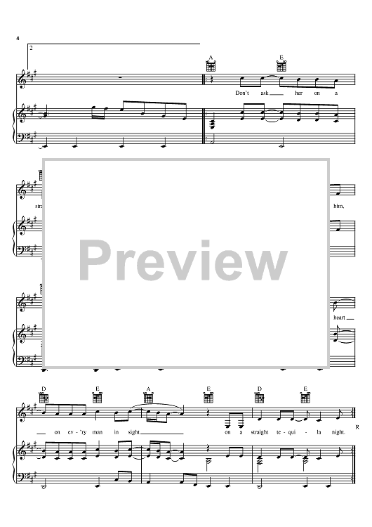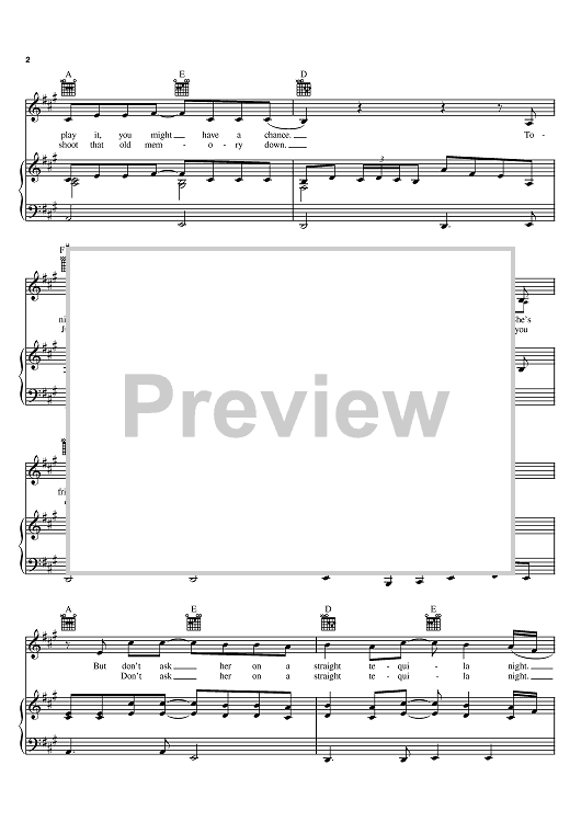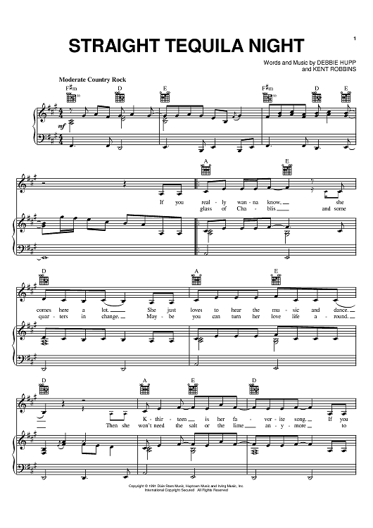 Digital Sheet Music for Straight Tequila Night by Kent Robbins, Debbie Hupp, John David Anderson scored for Piano/Vocal/Chords; id:375417