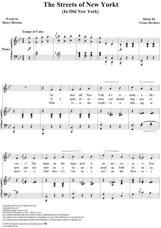 Digital Sheet Music for Streets of New York by Victor Herbert scored for Piano/Vocal; id:255240