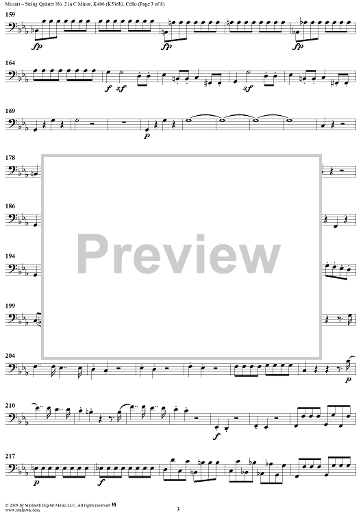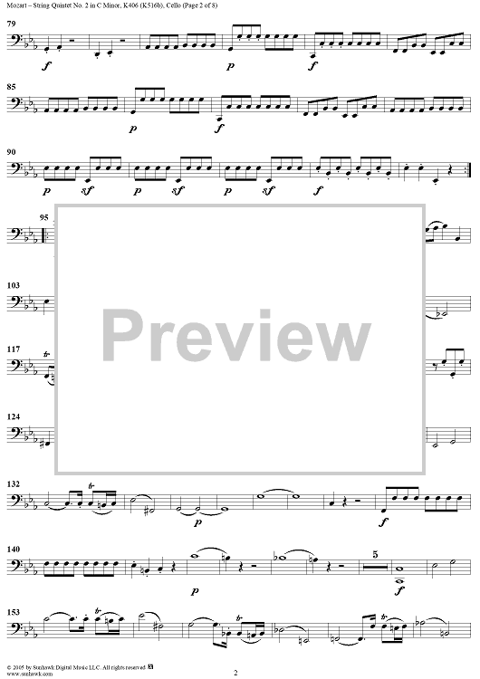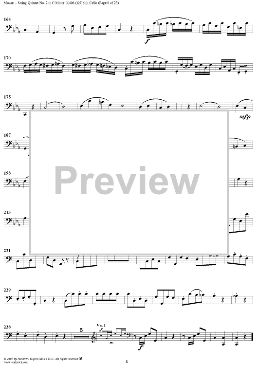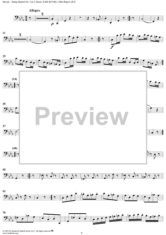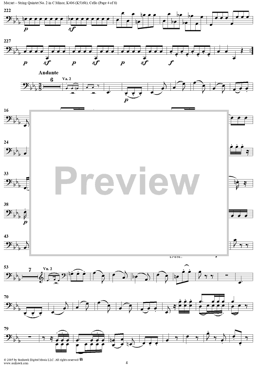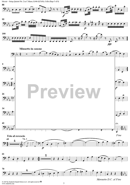 Digital Sheet Music for String Quintet No. 2 in C Minor, K406 - Cello by Wolfgang Amadeus Mozart scored for String Quintet; id:309286