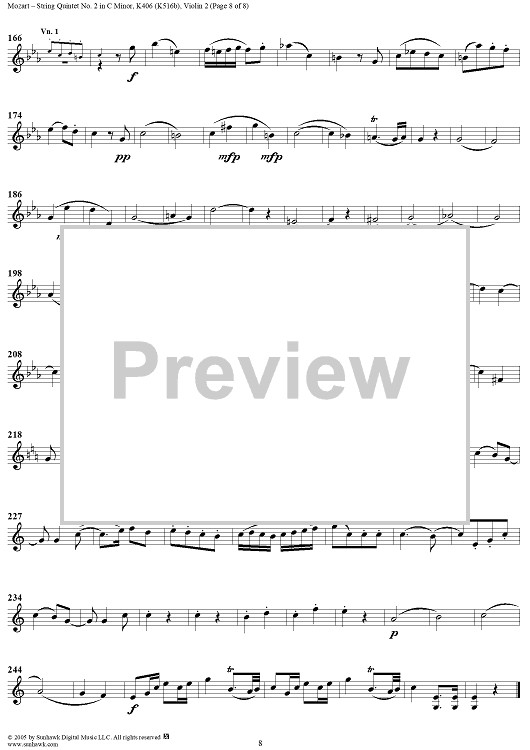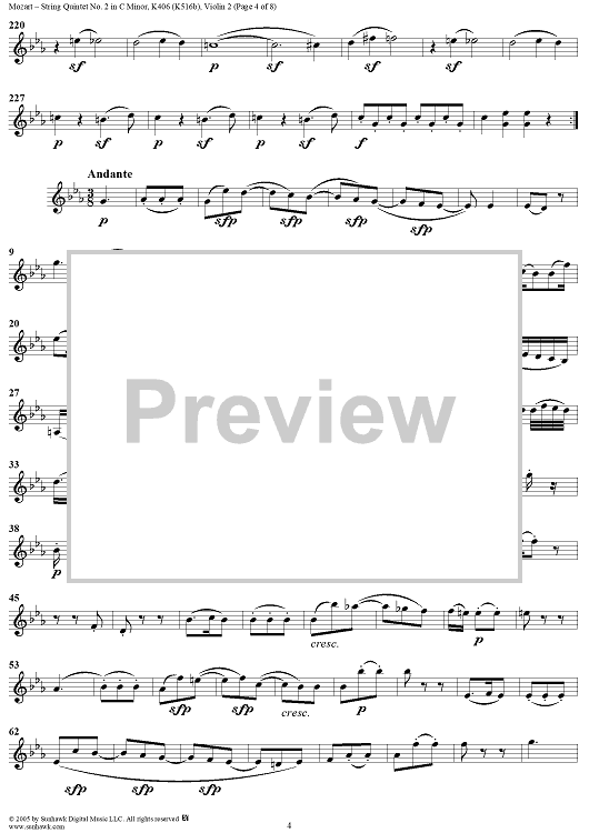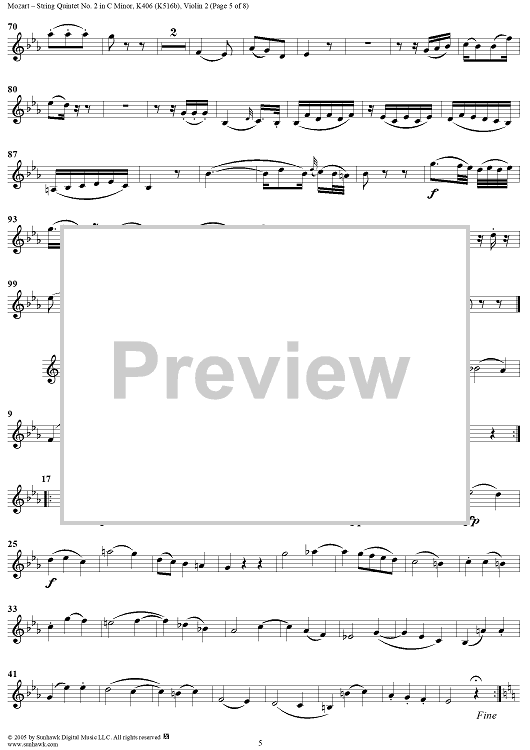 Digital Sheet Music for String Quintet No. 2 in C Minor, K406 - Violin 2 by Wolfgang Amadeus Mozart scored for String Quintet; id:309283