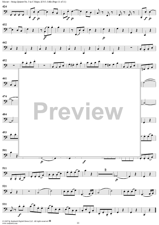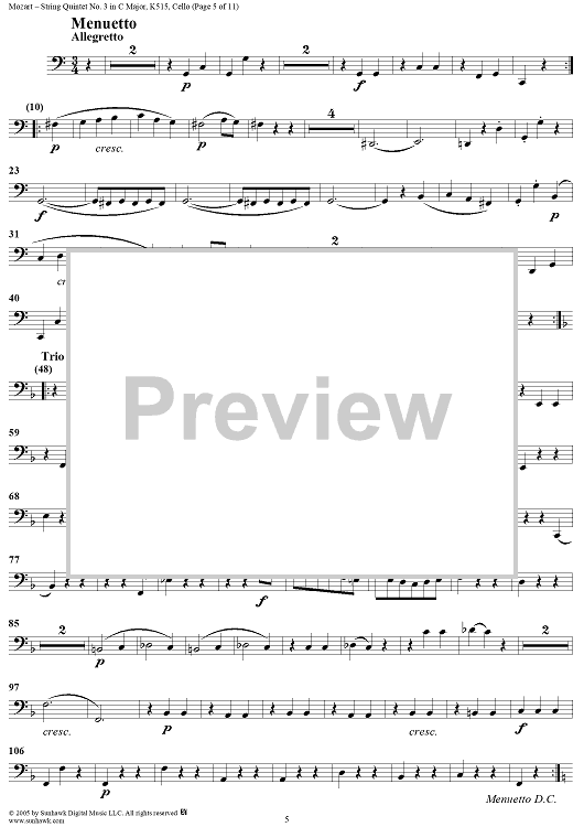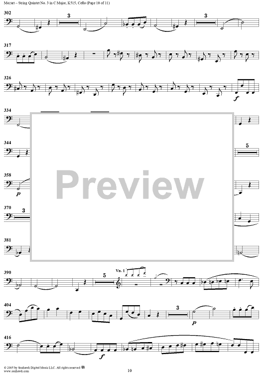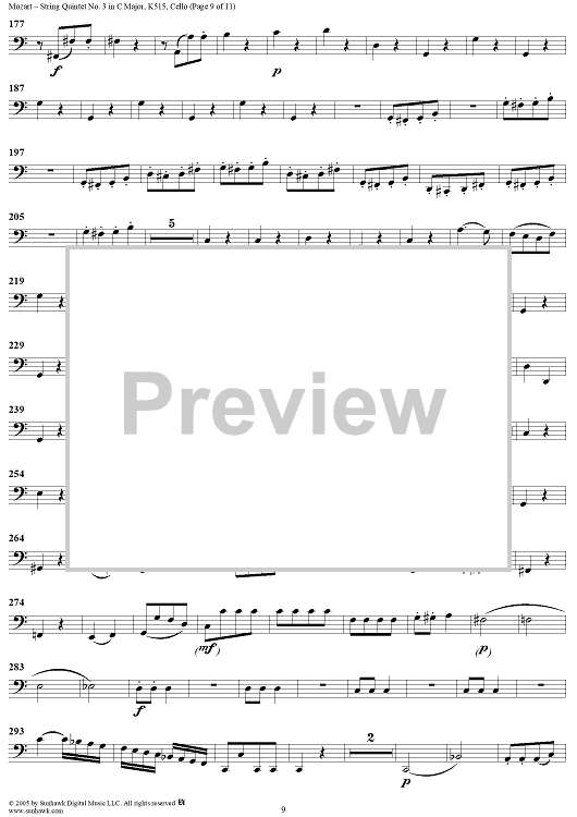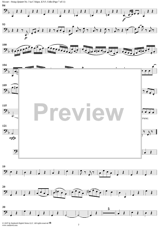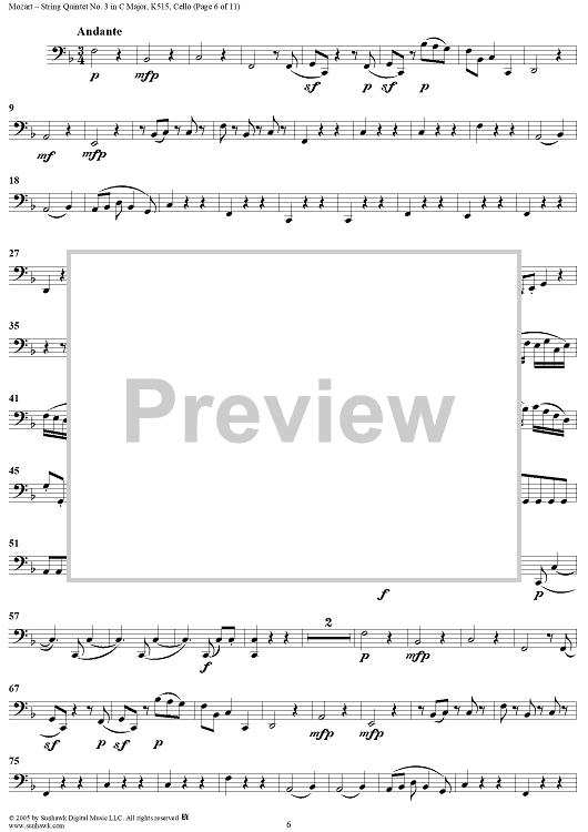 Digital Sheet Music for String Quintet No. 3 in C Major, K515 - Cello by Wolfgang Amadeus Mozart scored for String Quintet; id:309291