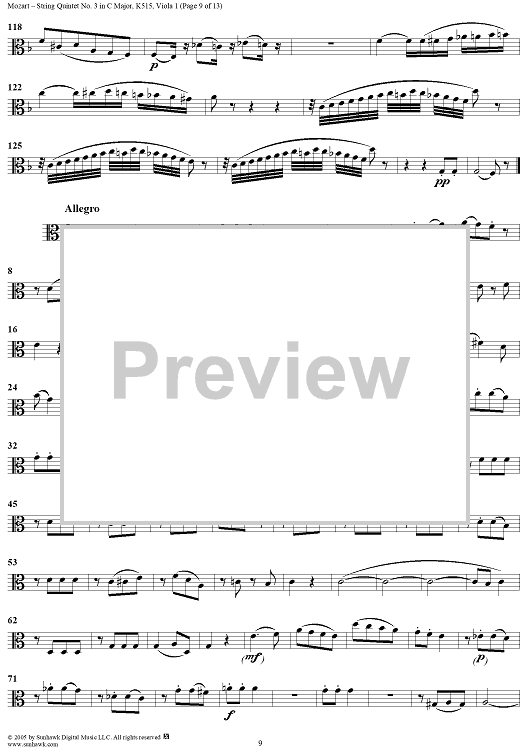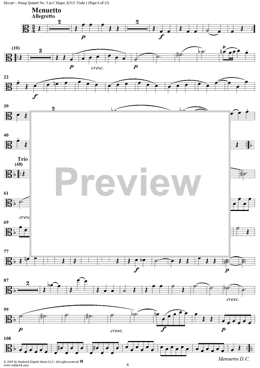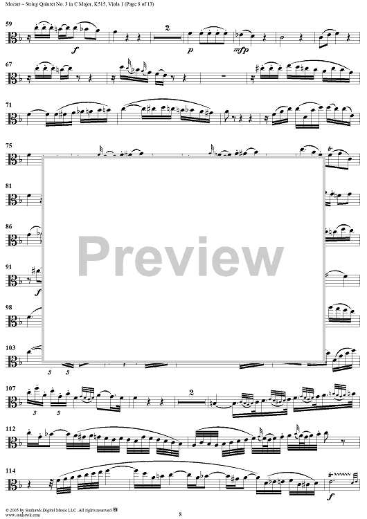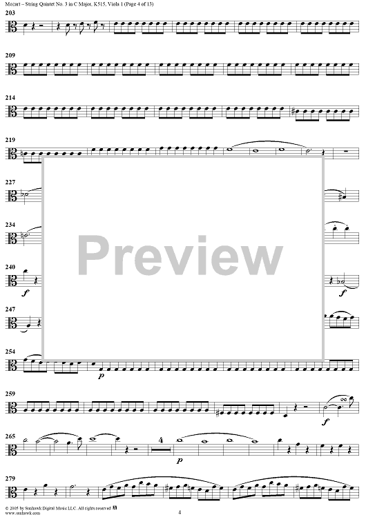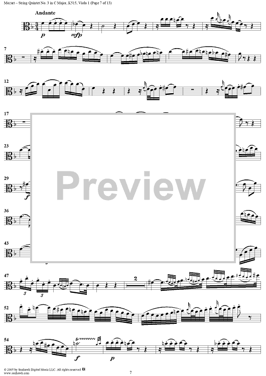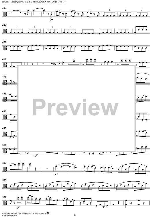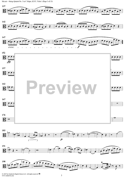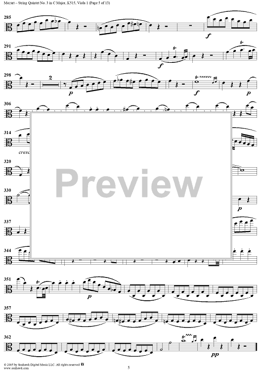 Digital Sheet Music for String Quintet No. 3 in C Major, K515 - Viola 1 by Wolfgang Amadeus Mozart scored for String Quintet; id:309289