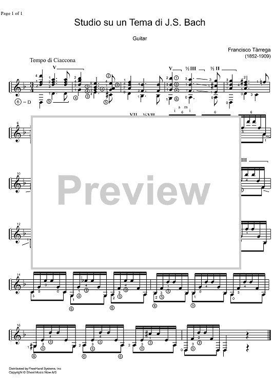"Studio su un tema di J.S. Bach" Sheet Music by F. Tarrega